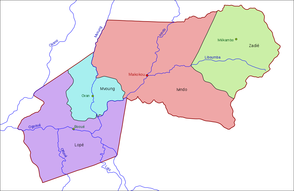 Les départements sont dirigés par des conseils départementaux qui sont sous l’autorité d’un président élu par ses pairs. Les conseillers départementaux sont quant à eux, élus au suffrage universel direct lors d’élections locales, sur le même principe que les élections municipales. Le conseil départemental est un démembrement de l’Etat qui a pour mission en principe d’assurer le développement des départements, parce que plus au fait des réalités locales. Fondée en 1912, Makokou est la capitale administrative de la province depuis 1958. Auparavant, c’était la ville de Boouée qui avait le statut de capitale provinciale.